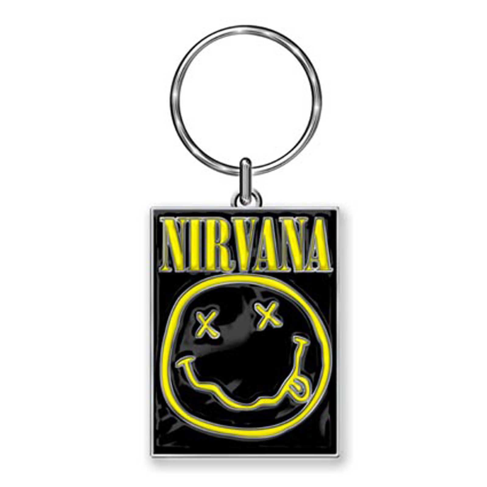 An official licensed Nirvana Keychain featuring the ‘Happy Face’ design motif.